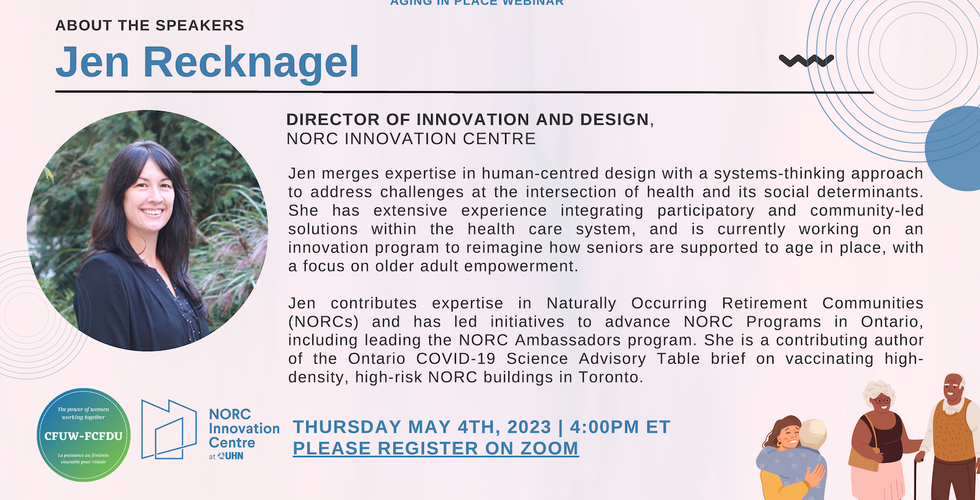Then the Long Term Care Study Group has organized a free public ZOOM event on May 4th to celebrate Elder Action Day by discussing Aging in Place Where You Want to be: Developing Supportive Communities for Seniors with Melissa Chang and Jen Recknagel from the Norc Innovation Centre—